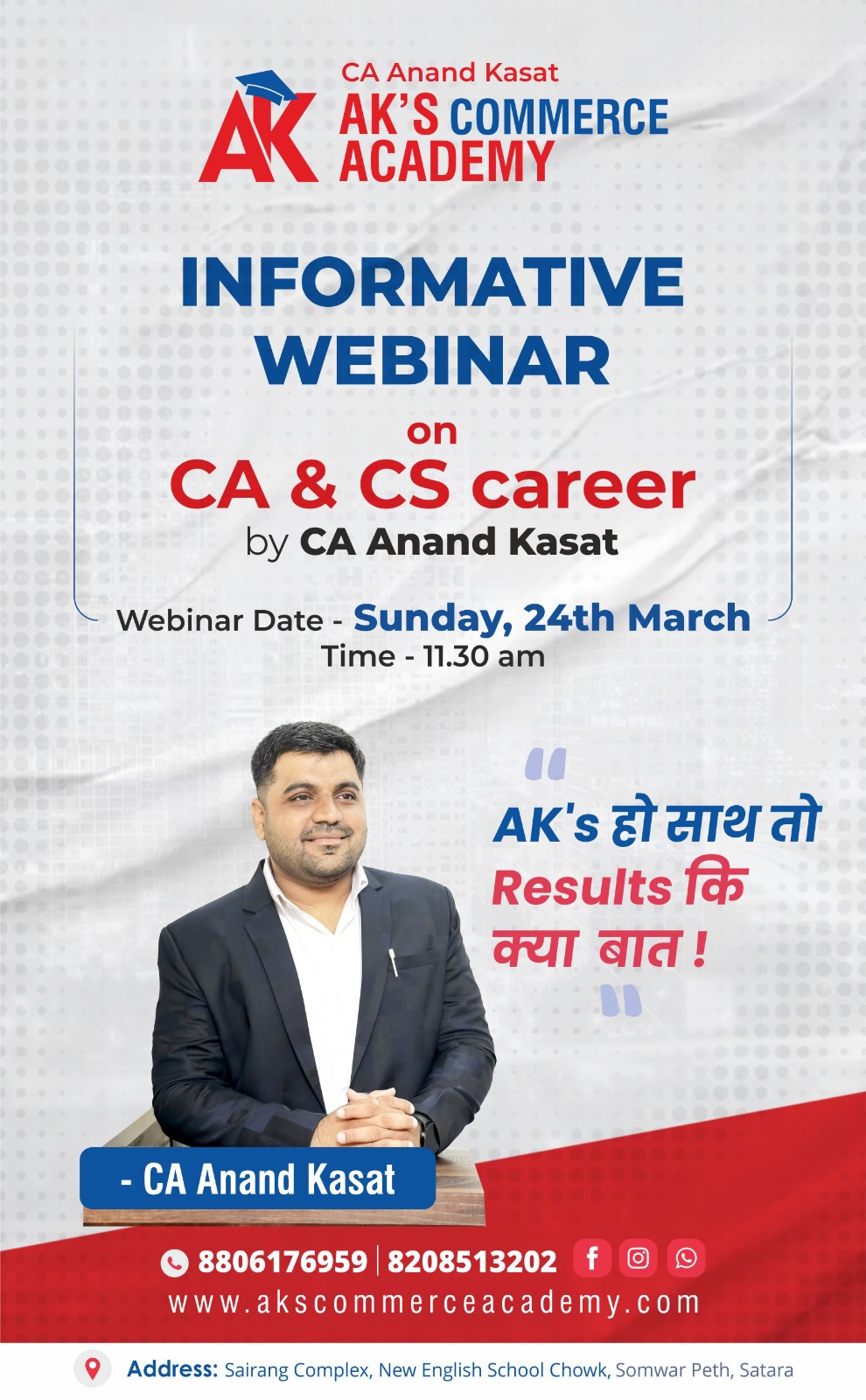 AK's Commerce Academy, Sairang Complex, New English School Chowk, Somwar Peth, Satara - 415002.